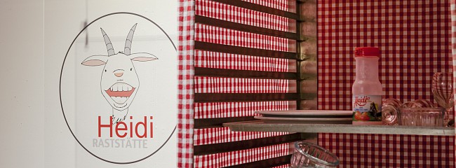 Schon beim Eintritt in die Erlebniswelt zeigt sich die Spannung zwischen Stadt und Natur, Heimat und Fremde, Sehnsucht und Realität, denn man gelangt durch eine schwere Bunkertür in den Kulturgüterschutzraum im Keller des Museum, in dem sich die Ausstellung befindet. So wird schon gleich zu Beginn der Ausstellung auf skurrile Weise der Status von „Heidi" bestätigt – Heidi ist Schweizer Kulturgut!