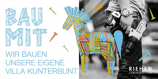 An 12 Terminen im August und September ist die Baustelle geöffnet und lädt alle ein, sich zu beteiligen. Am 9. September wird die Villa Kunterbunt im Rahmen der Ausstellungsvernissage feierlich zum Spielen erö net.